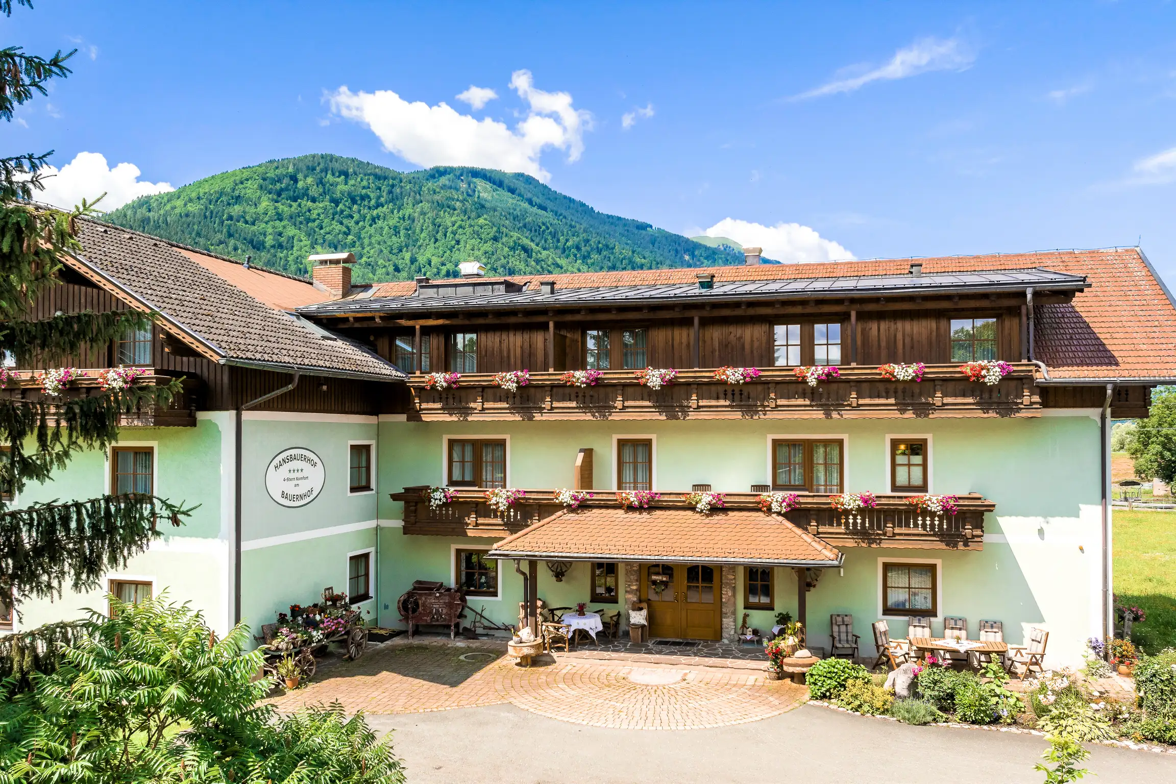 4-Sterne-Apparthotel Hansbauerhof mit Frühstück trifft Bauernhof-Erlebnis, auf der sonnigen Südseite der Alpen, im Dreiländereck Österreich, Italien und Slowenien. Ein wunderbarer Ort für Liebhaber der Natur, der Entspannung und des Sports. Ein reichhaltiges Angebot mit vielen, schon im Preis inbegriffenen, Annehmlichkeiten.