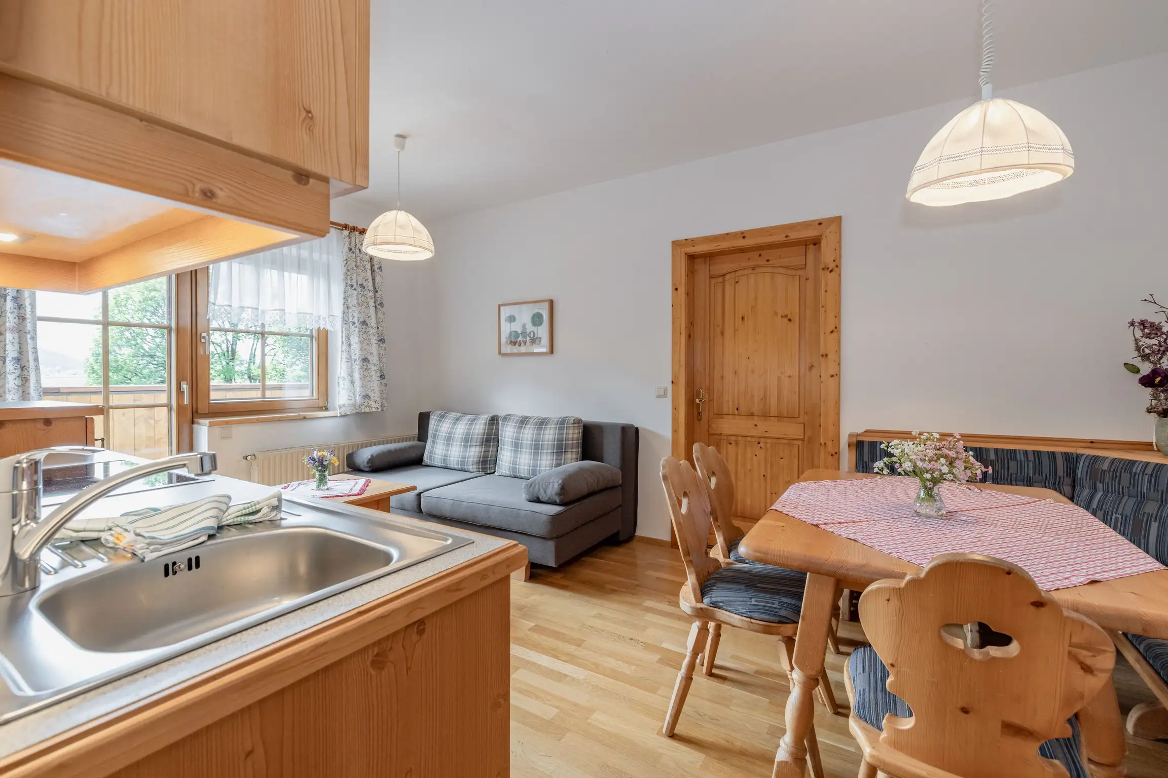 57 m², + großer Balkon westseitig mit Blick durch das breite Gailtal bis zu den Lienzer Dolomiten, 2 getrennte Schlafzimmer– davon eines mit getrennt stehenden Betten, Wohnküche mit gemütlicher Sitzecke und Sofa, Geschirrspüler, Herd mit Backofen, Filter-Kaffeemaschine, Wasserkocher, Bad mit Badewanne und Dusche, Kosmetikspiegel, Kosmetikartikel und Haarföhn, WC separat, Vorraum, Sat-TV, Bettwäsche, Hand- und Geschirrtücher. Für 4 bis 6 Personen.