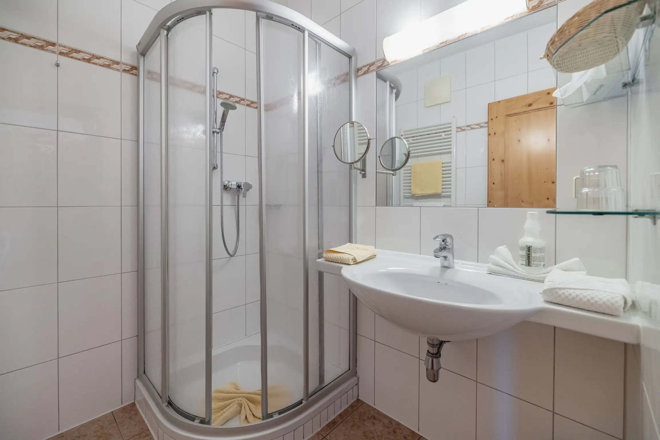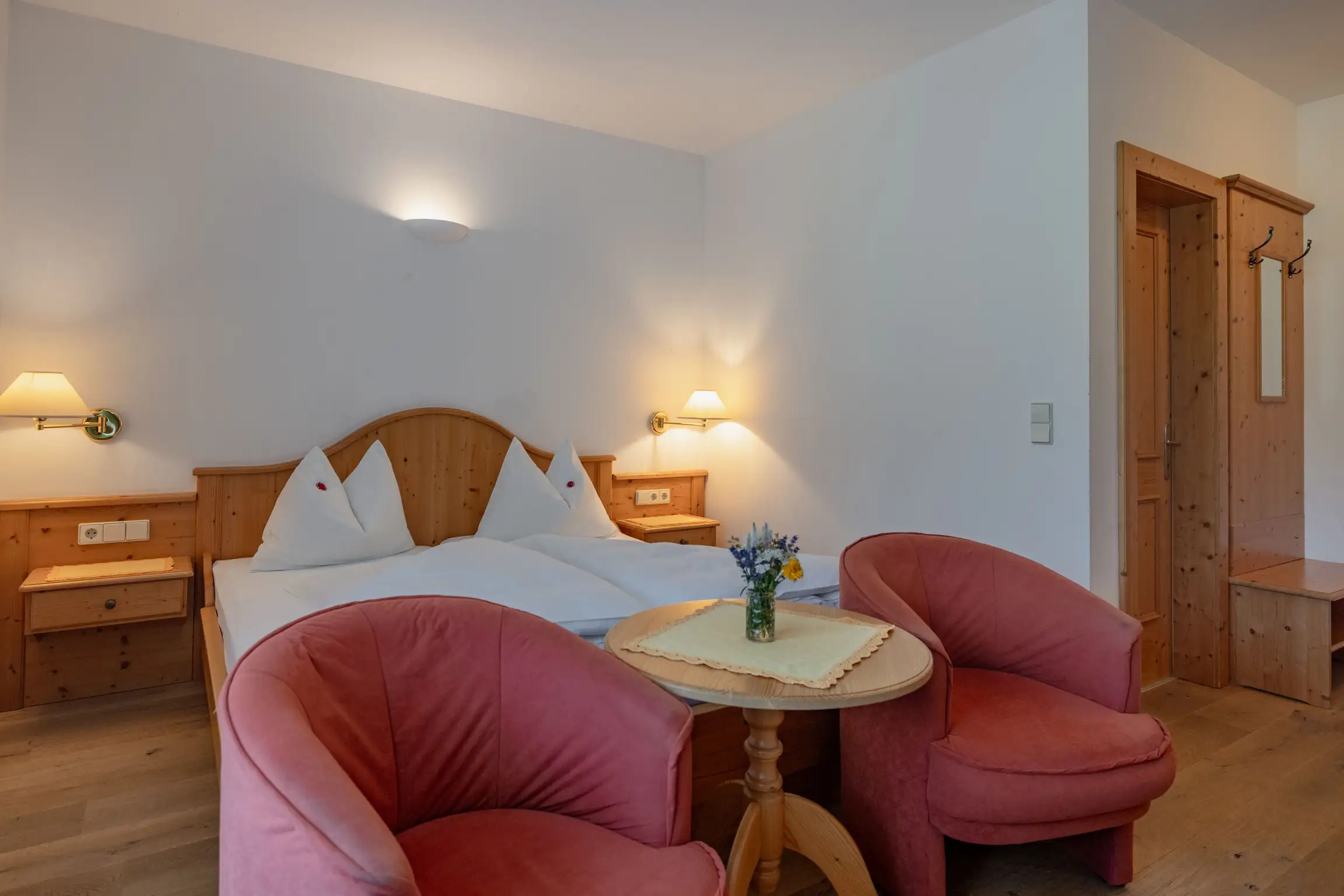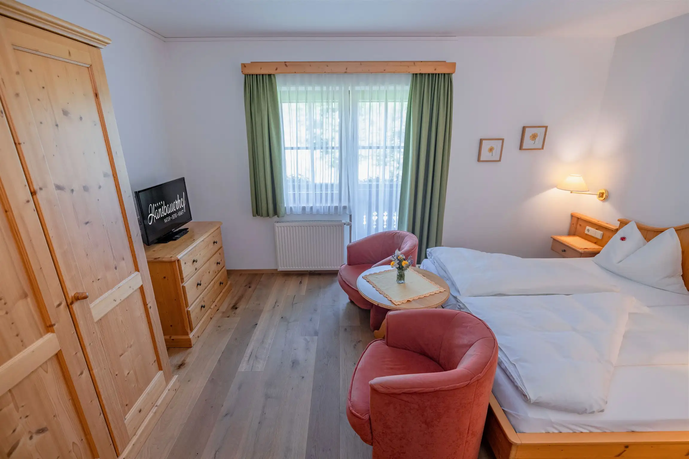 ca. 23 m² + Balkon westseitig mit Blick durch das breite Gailtal bis zu den Lienzer Dolomiten, Doppelzimmer, Safe, Minikühlschrank, Bad mit Kosmetikspiegel, Kosmetikartikel und Haarföhn, WC separat, Sat-TV.