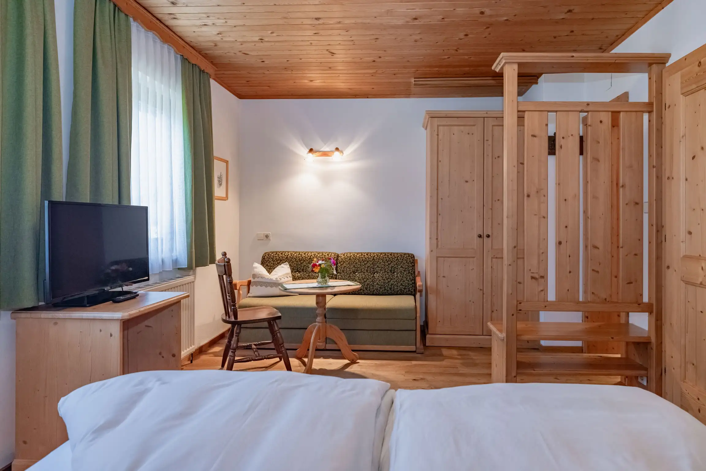 ca. 21 m² Doppelzimmer, Safe, Minikühlschrank, Bad mit Kosmetikspiegel, Kosmetikartikel und Haarföhn, WC, Sat-TV, im Parterre ohne Balkon.