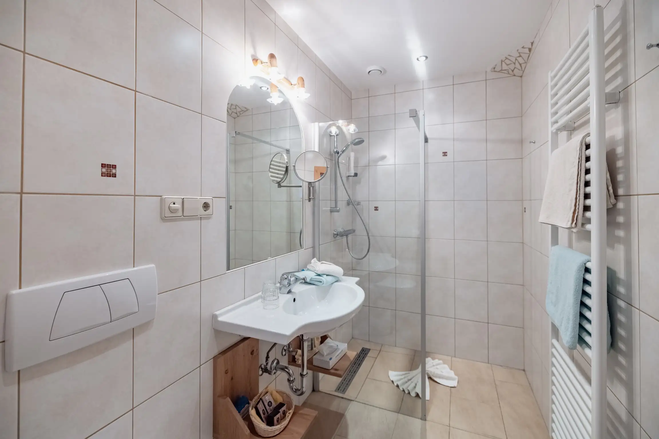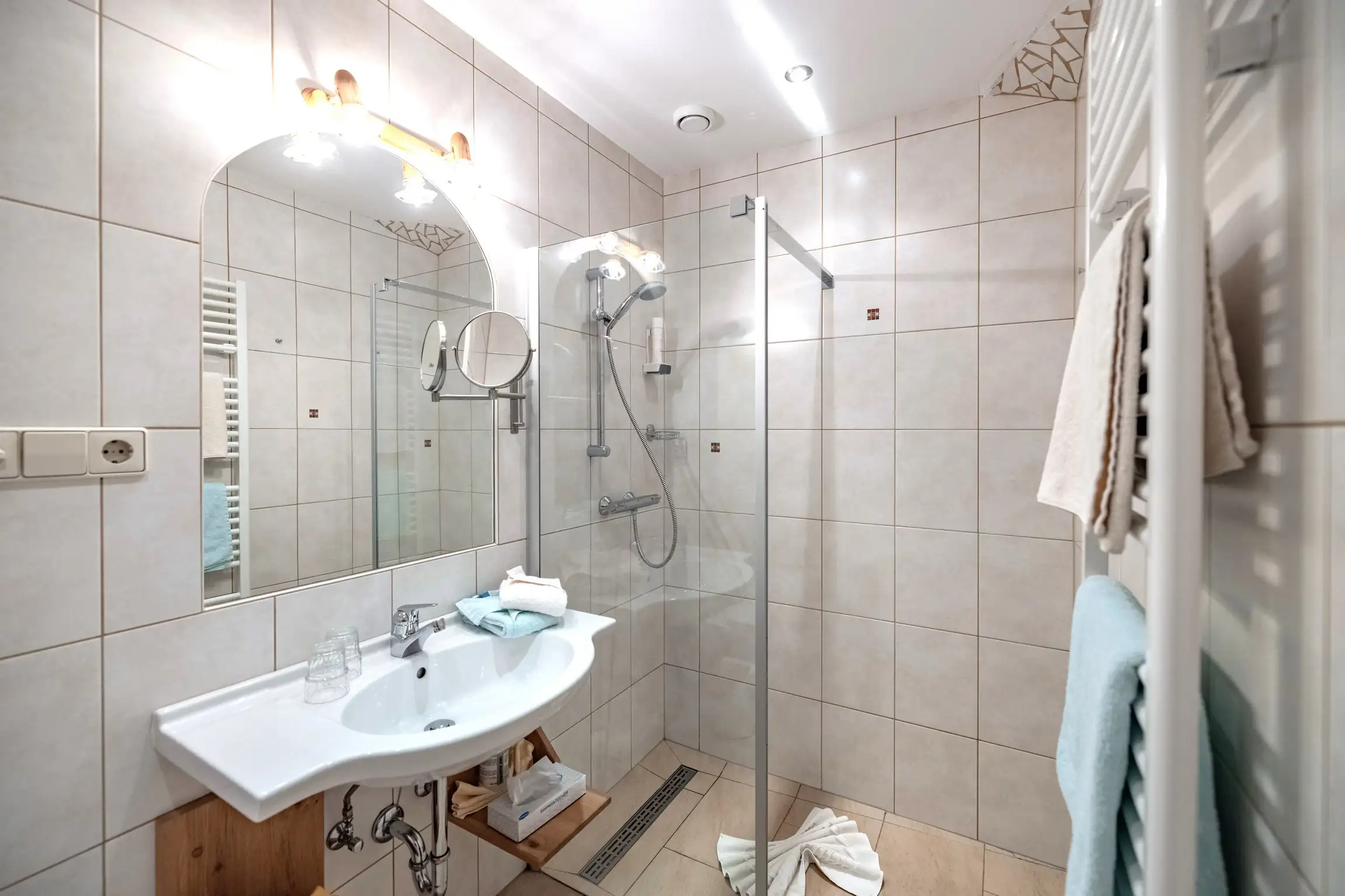 Bademäntel, Wäscheständer, Waschmaschinenbenützung gegen Entgelt möglich.